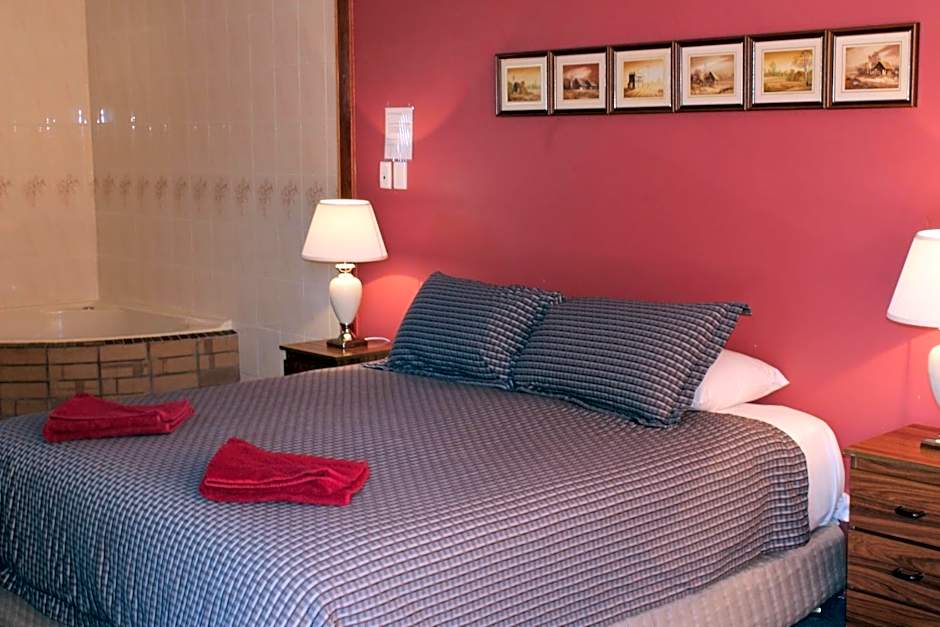 This room features a toaster, refrigerator, kettle and a private bathroom with free toiletries and a spa bath. It also includes a seating area with a flat-screen TV.